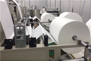 生產(chǎn)流程:原材料放卷 — 分切 — 縱向折疊 — 在線加藥液 —設(shè)定長度— 切斷 —設(shè)定堆疊——成品輸出